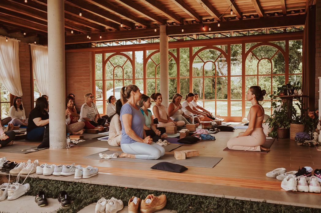 A proposta nasceu da união de diferentes áreas de atuação, yoga, nutrição e consultoria de imagem, e do desejo comum das anfitriãs de criar um espaço para desacelerar e olhar para dentro.