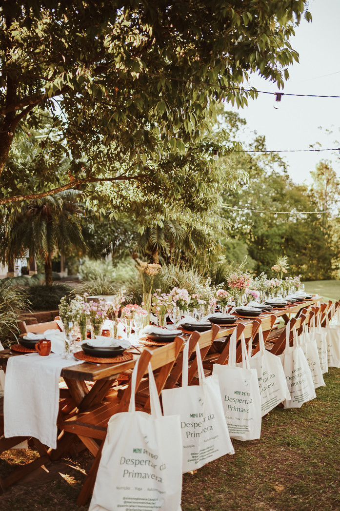 Ao longo do dia, as convidadas receberam uma Ecobag exclusiva com produtos e brindes de marcas parceiras, um gesto simbólico de cuidado e gentileza que marcou a experiência.