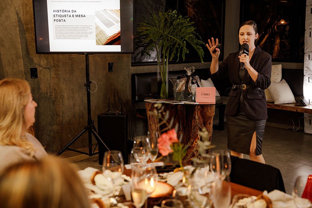 Débora Kowalski conduziu o workshop de mesa posta, mostrando que arrumar uma mesa vai muito além da disposição de louças e taças — é um gesto de carinho e delicadeza que transforma momentos simples em ocasiões inesquecíveis.